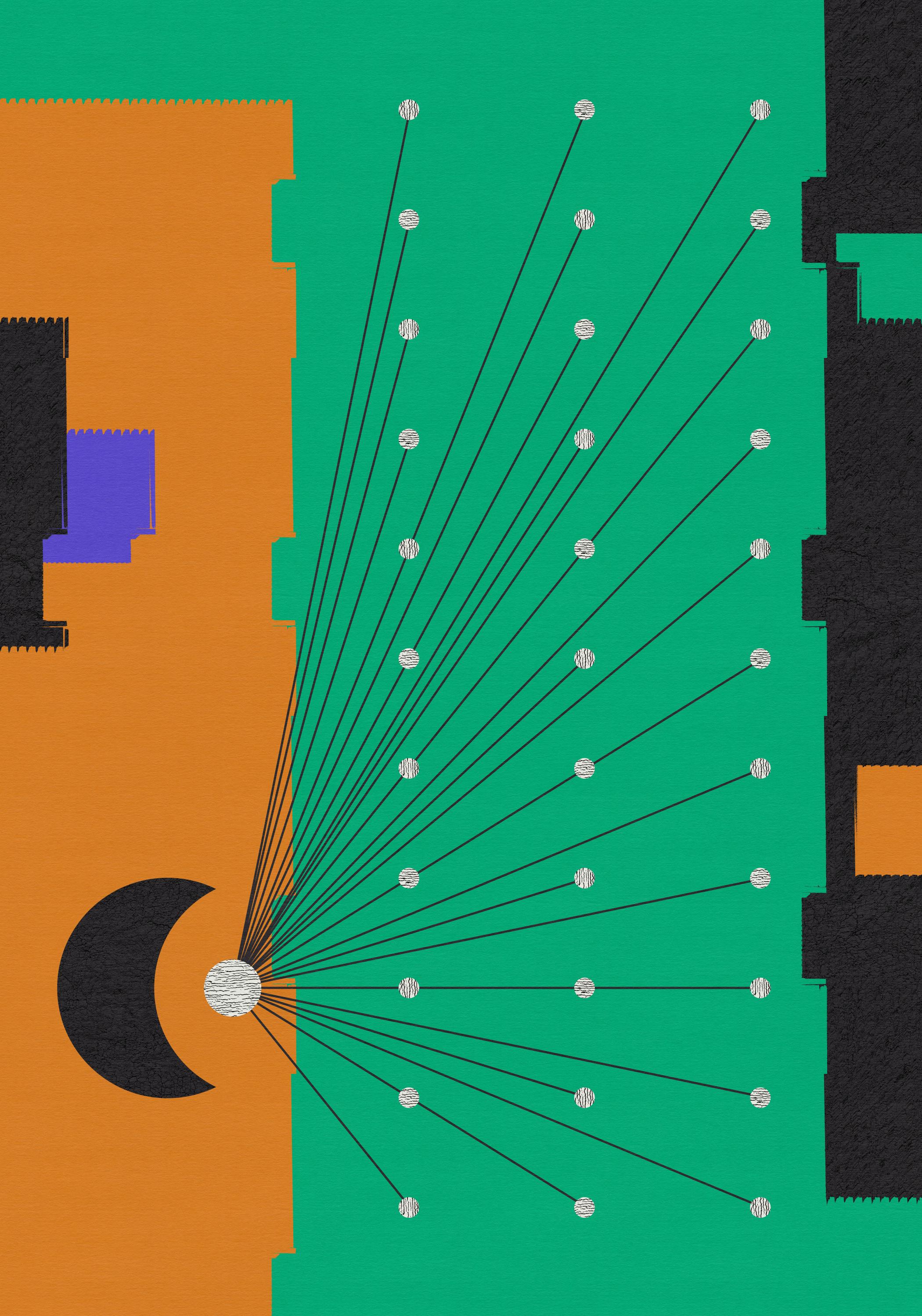 Suspendu dans les limites industrielles. Lié à une entité centrale et naturelle qui me gouverne.