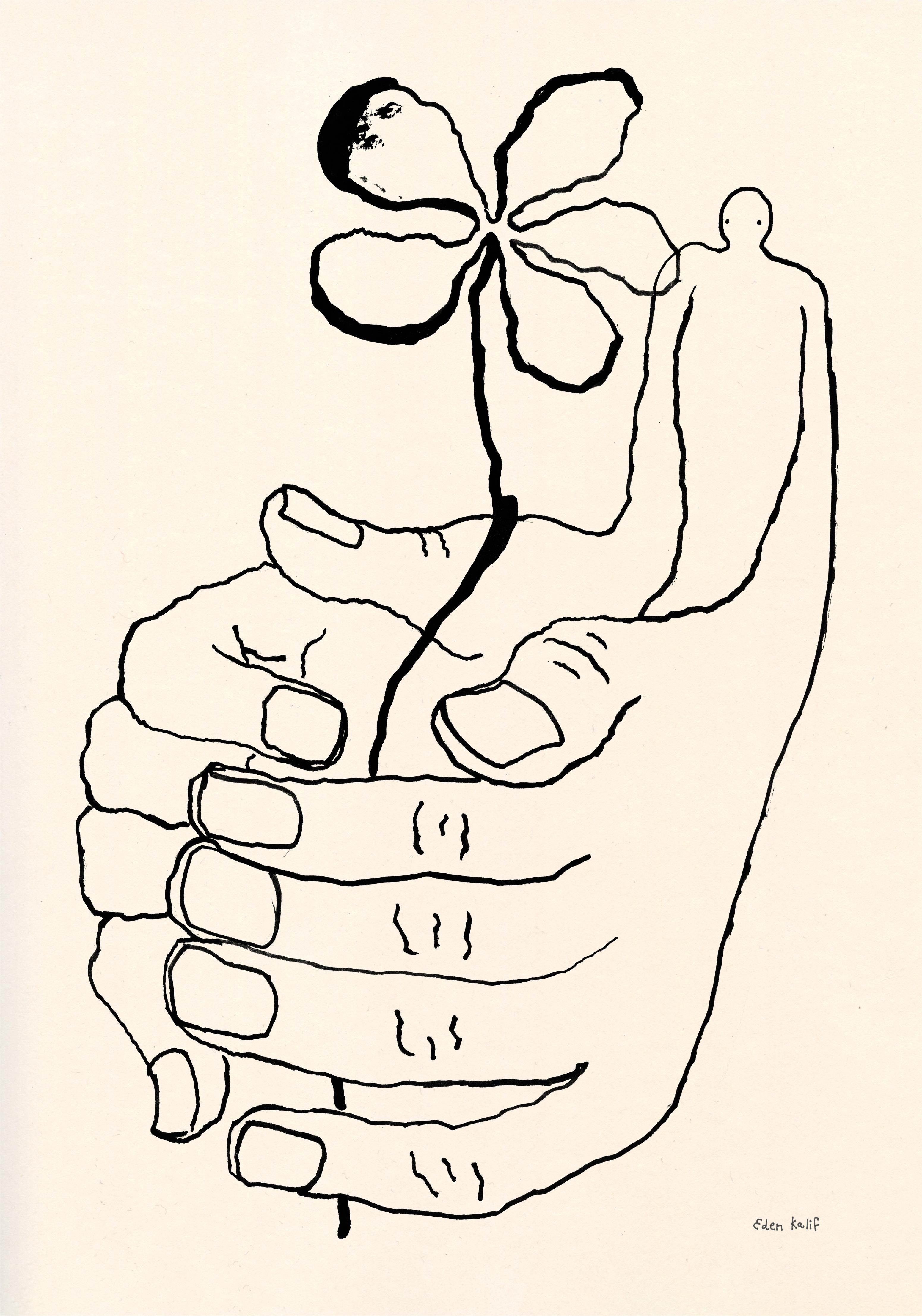 Hello! My name is Eden Kalif, an artist and tattoo artist based in Tel Aviv. I work at the intersection of painting, drawing, and printmaking. Many of my images begin as quick sketches before becoming prints. I create in a bright studio in Tel Aviv and enjoy the process as much as the result.